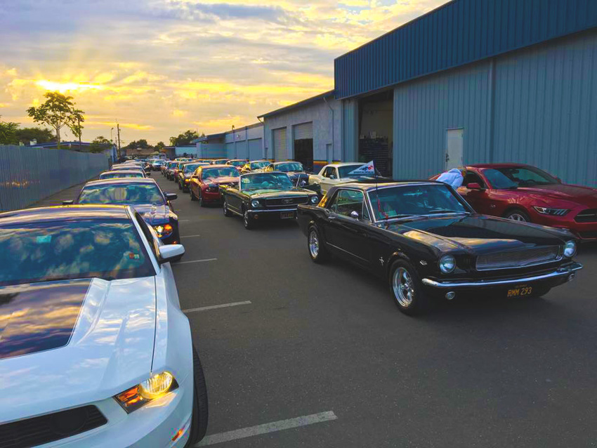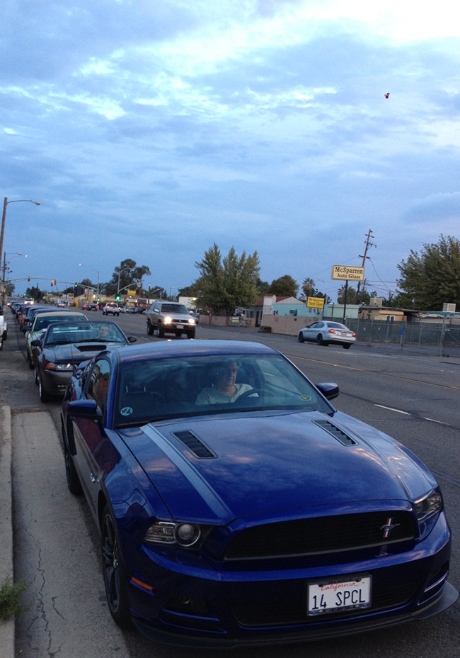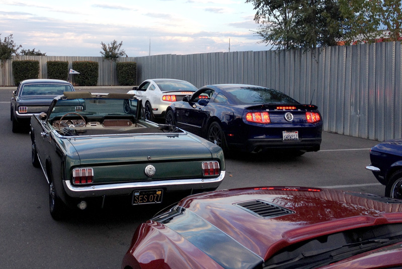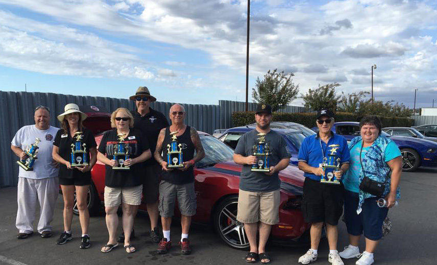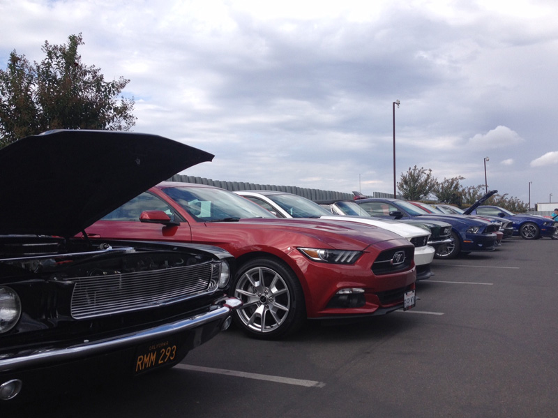 What started out as a very stormy morning, with lots of rain, thunder, and lightening, the SAMC came through with 14 cars for this annual event. We met as a group at the IHOP and departed at 6:00 am in the dark to caravan to Stockton. Once we arrived we were in line with approximately 120 other Mustang beauties. The group parked together and even had a new potential member join our club and see what we are all about.